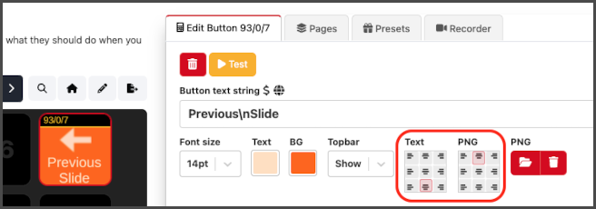If you want to use any of the PNGs from the module presets - here is a link to the <a href="https://raw.githubusercontent.com/bitfocus/companion-module-renewedvision-propresenter-api/main/IconPack.zip">IconPack</a>.
