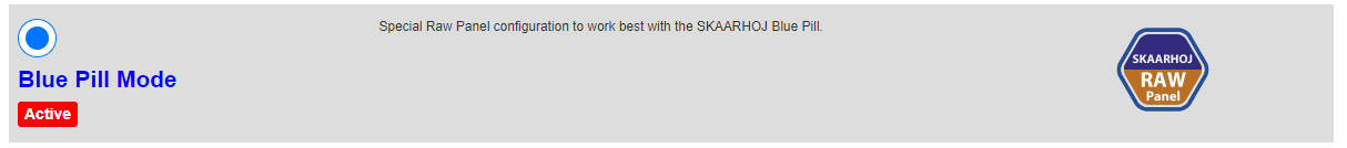Unisketch Blue Pill Mode: The second way to connect a Unisketch panel is via the "Blue Pill Mode" that has been introduced in all Unisketch firmware since late 2021, but you might not have seen or used it yet, as this is normally only used together with a SKAARHOJ Blue Pill. But this mode can also be used with this module as it uses the same Raw Panel API and setup. You can even see this as a separate default config on the config page for your panel.
