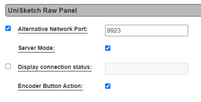 - "Server Mode Lock To IP" allows you only to allow a connection to the panel from the IP specified in the IP setting for the "UniSketch Raw Panel" core. This can be left unticked
